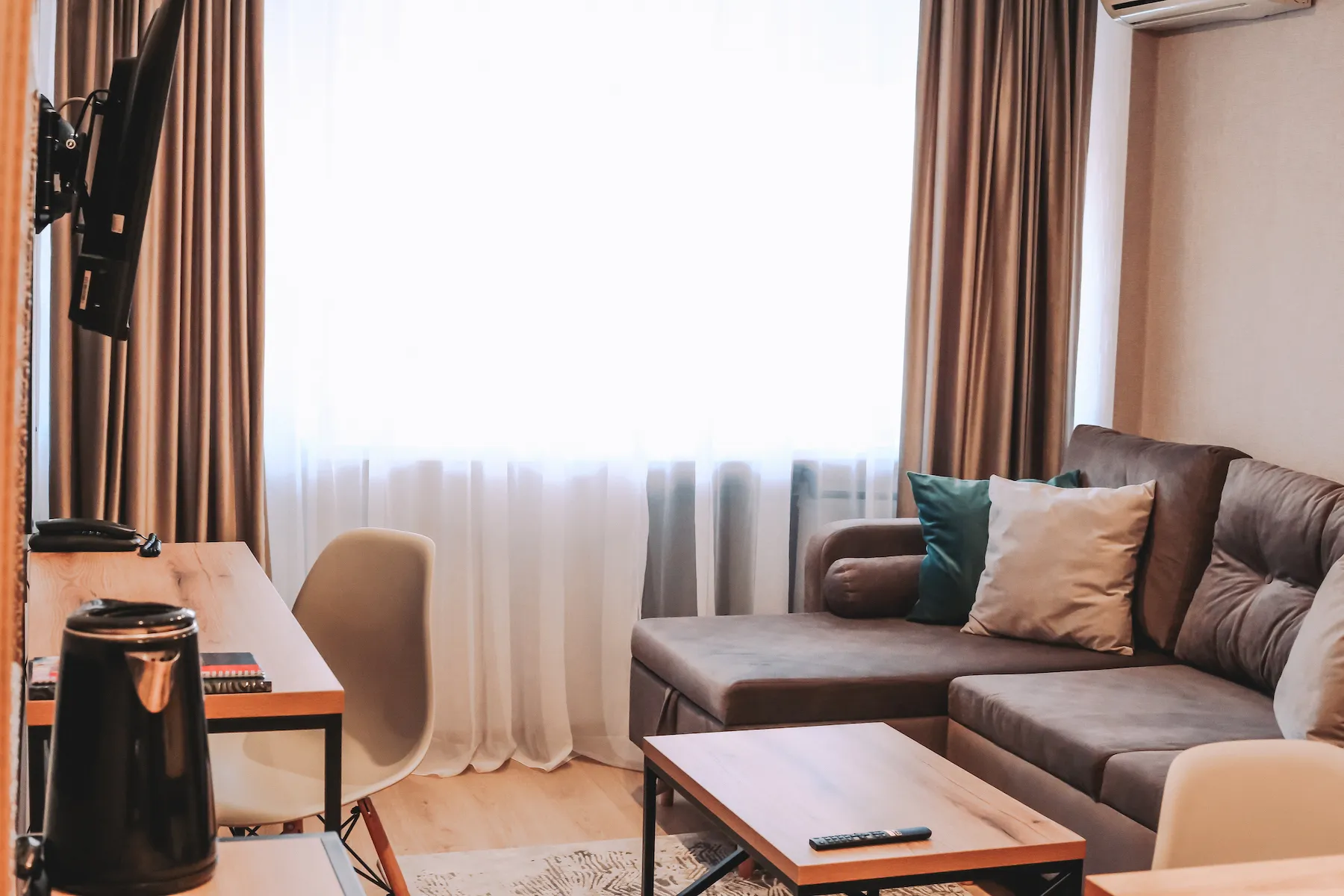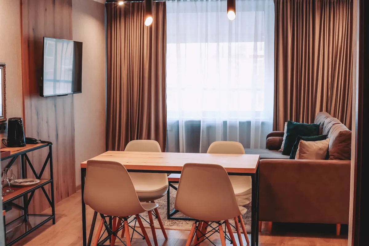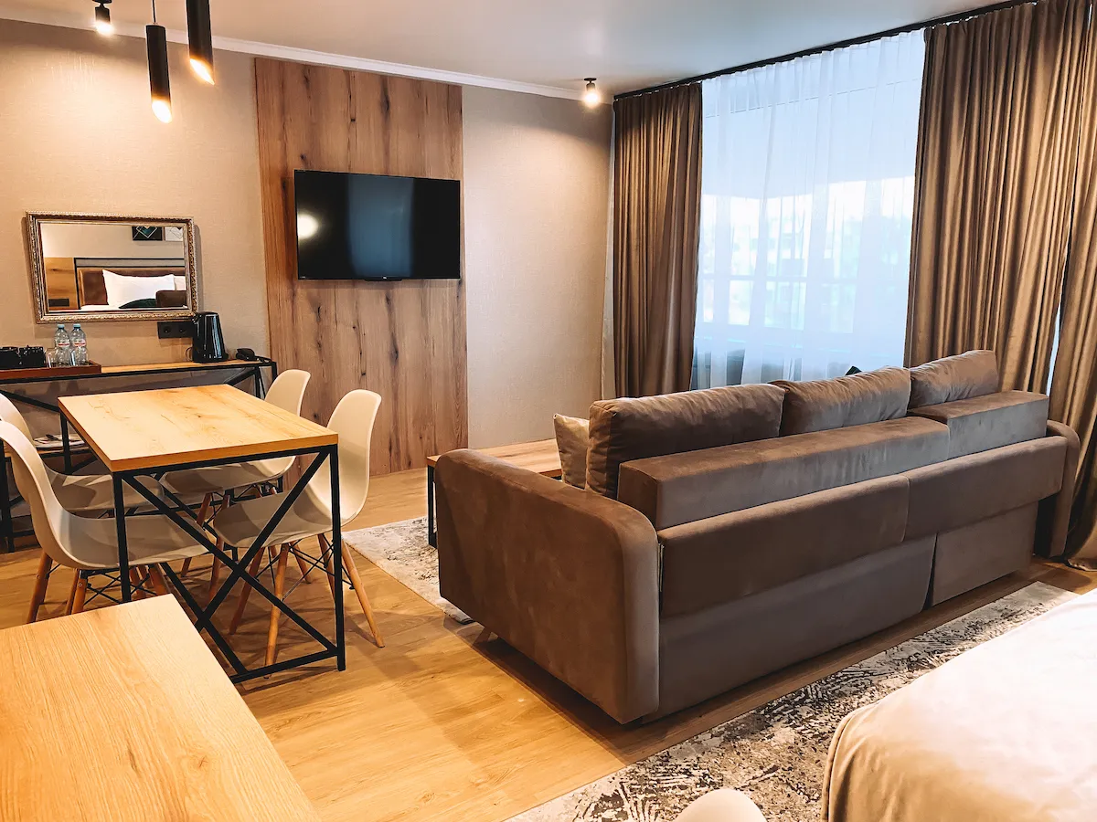 The rooms overlook the city square, the main street of the city, the courtyard of the hotel, the Palace of Culture. Balcony (in some rooms).