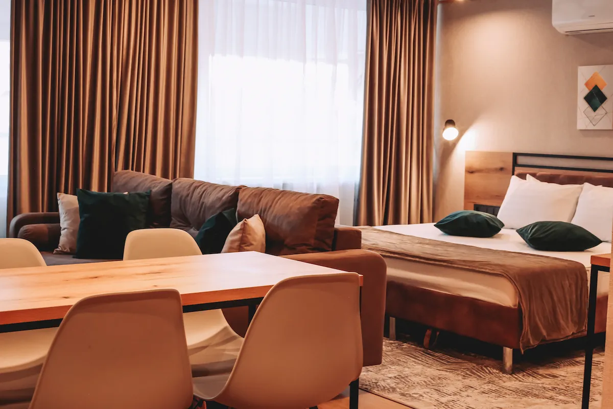 The rooms offer views of the city.