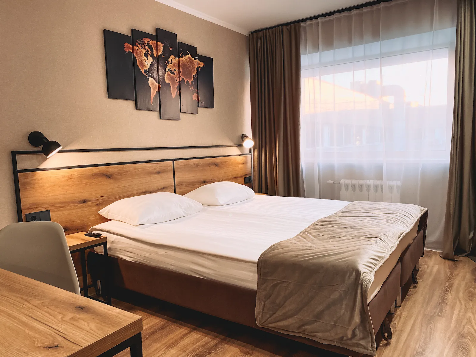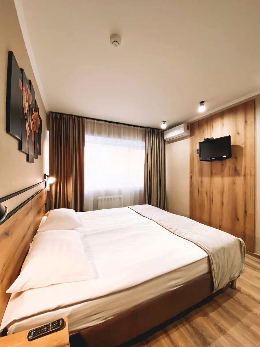 The room can accommodate up to 4 people. The rooms overlook the city square, the main street of the city, the courtyard of the hotel, the Palace of Culture.